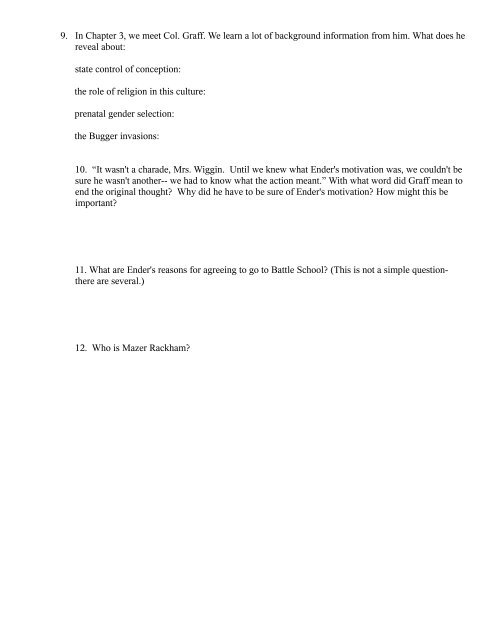 Enders Game Study Guide Chapters 10 11 Docx Study Guide For Ender S Game By Orson Scott Card Chapters 10 11 Please Respond To Each Question In At Course Hero